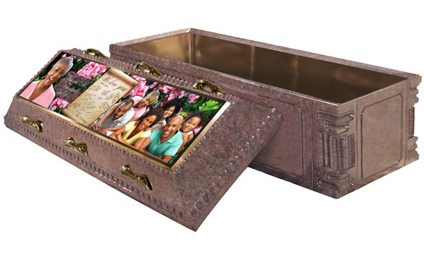 When you choose the Trigard Elite®, you choose the strongest and most beautiful burial vault available today. The beauty is undeniable, when you see the hand-crafted metal interior and cover. Personal photos or words of endearment can be added to the metal cover.