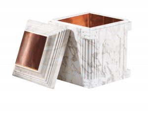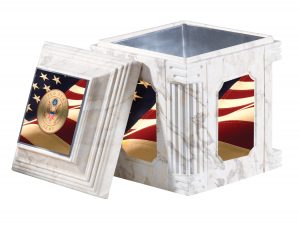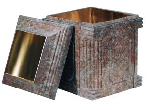 The beauty is undeniable, when you see the hand-crafted metal interior and cover. Choose stainless steel, copper or bronze. Personal photos, emblems or words of endearment can be added to the metal cover.