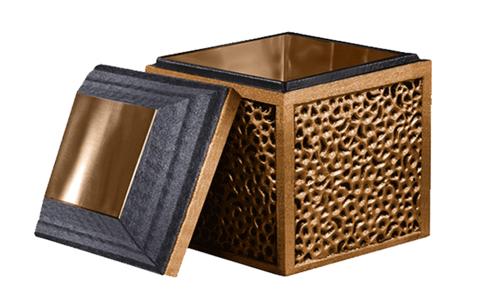 Complete the look with a matching, metal cover. Choose stainless steel, cooper or bronze. These fine metals are a wonderful background for personal photos, military honors or words of endearment. Combined with a reinforced concrete core, the Reflection is a picture of enduring strength and beauty.